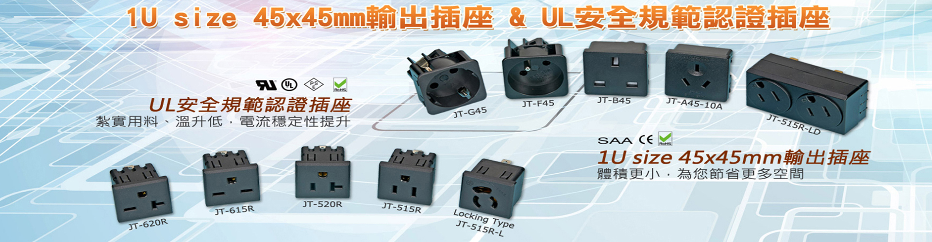 佛山市杰泰電器有限公司創(chuàng)辦于2008年,坐落于廣東佛山南海。杰泰電器是一家專業(yè)從事生產(chǎn)、貿(mào)易、銷售世界通用高質(zhì)量、插頭插座、轉(zhuǎn)換插頭、轉(zhuǎn)換插座等各種電子電器產(chǎn)品的高新企業(yè)。我們公司的宗旨是:為廣大用戶提供新穎、獨特、安全的電器配具和一流的售后服務(wù)。 主要產(chǎn)品有:多功能旅游轉(zhuǎn)換插頭、全球通用轉(zhuǎn)換插座、音響設(shè)備插頭、美式插頭、英式插頭、美式插座、歐式插座、丹麥插座、英式插座、發(fā)電機插頭插座、工業(yè)防水插頭插座等。產(chǎn)品已通過美國、加拿大、丹麥、瑞典、挪威、德國、芬蘭等歐美國家之安全認證標(biāo)準(zhǔn)。并根據(jù)歐盟環(huán)保認證標(biāo)準(zhǔn)確保生產(chǎn)出高質(zhì)量的產(chǎn)品。產(chǎn)品適用于廠房機械建設(shè)、各種電源設(shè)備、UPS不間斷電源、車載電源、通信機柜、流水線輸送機、小型發(fā)電機、舞臺音響設(shè)備、燈具等電器設(shè)備。產(chǎn)品通過了:中國3C,歐州CE,VDE,TUV,美國ETL,UL,cUL,法國NF,加拿大CSA,英國BS,澳洲SAA 等安全認證。工廠通過了ISO9001:2000質(zhì)量體系認證。 目前,世界經(jīng)濟日益全球化,農(nóng)業(yè)、工業(yè)、第三產(chǎn)業(yè)不斷開放發(fā)展,跨國貿(mào)易活動頻繁,電器市場不斷分細,迫切需要全球通用的插頭、插座,以方便平時的生產(chǎn)、生活、學(xué)習(xí)、工作的需求。我們率先順應(yīng)了這一潮流,以無以倫比的精良設(shè)計與質(zhì)量,開發(fā)出各種世界通用的插頭插座,獲得了萬千用戶的青睞。實現(xiàn)了真正意義上的全球通。 至此,我們公司不僅成為國內(nèi)各大家電公司、工程技術(shù)及專業(yè)電器銷售商的忠實供貨商,而且我們的產(chǎn)品還遠銷歐洲、美洲、澳洲、中東、非洲、東南亞、日本、韓國、香港、臺灣等世界各地。我們長期以穩(wěn)定的優(yōu)質(zhì)產(chǎn)品和優(yōu)質(zhì)的服務(wù),受到客戶的一致好評和信賴。